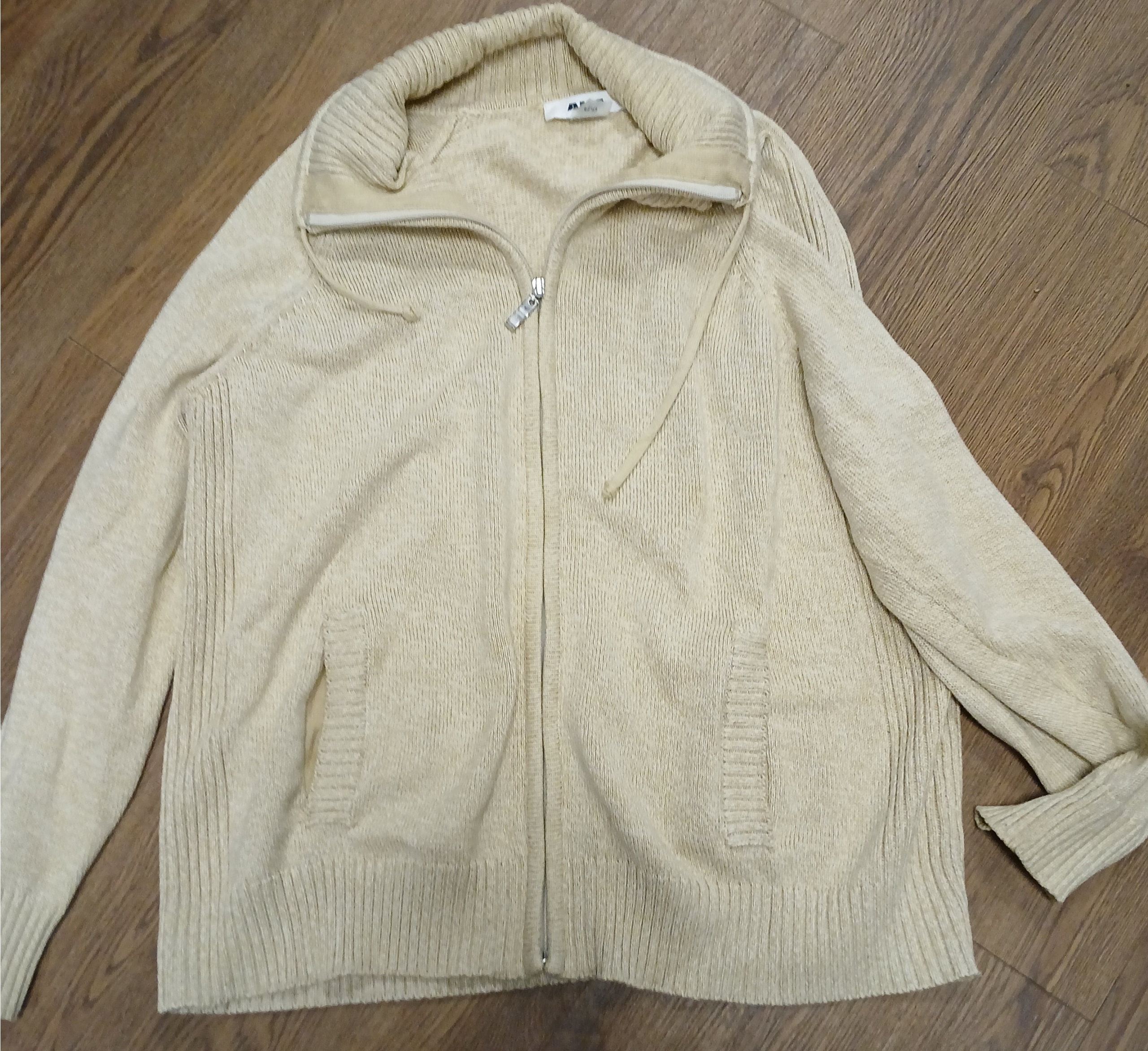 Bin55 DK Womans lg petite Alia beige zip up sweater